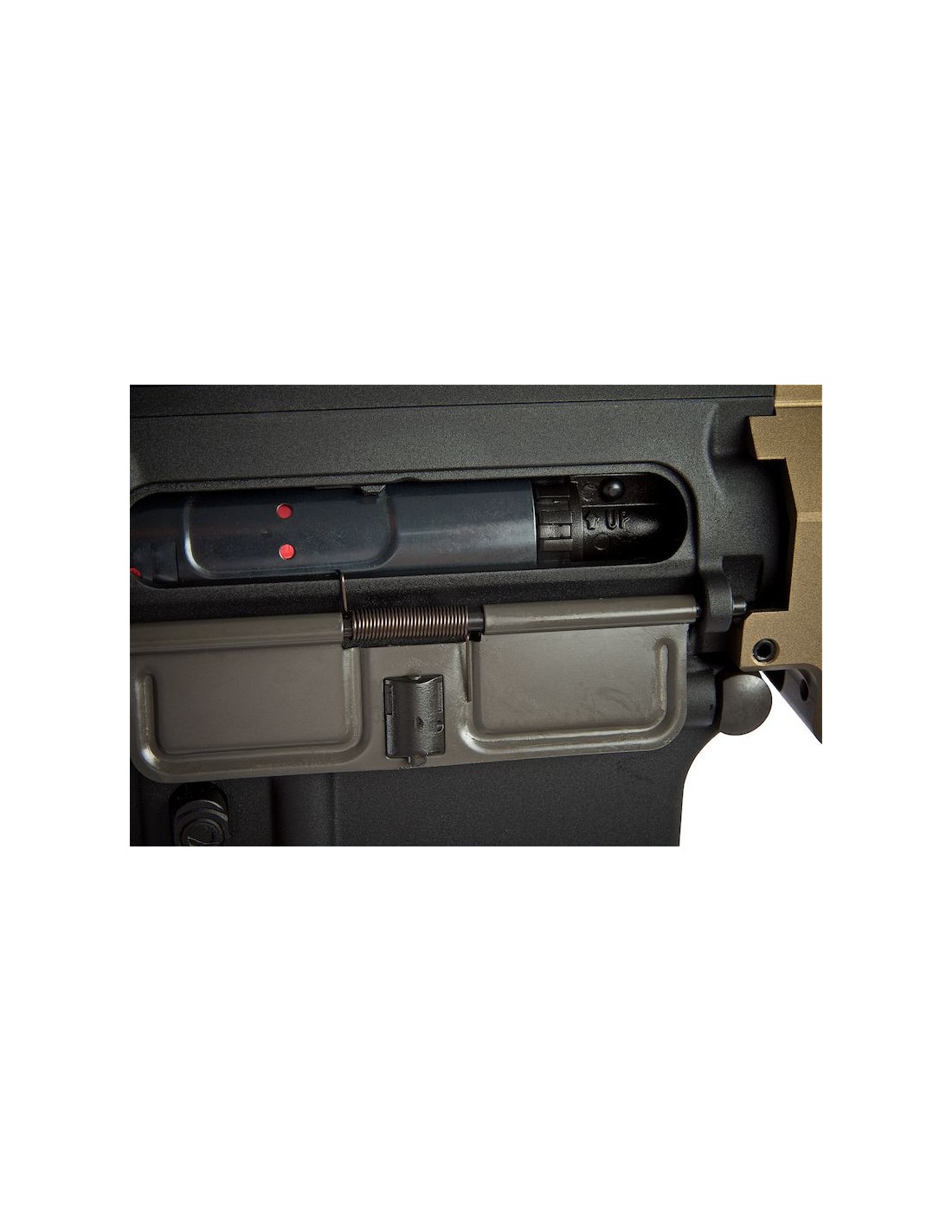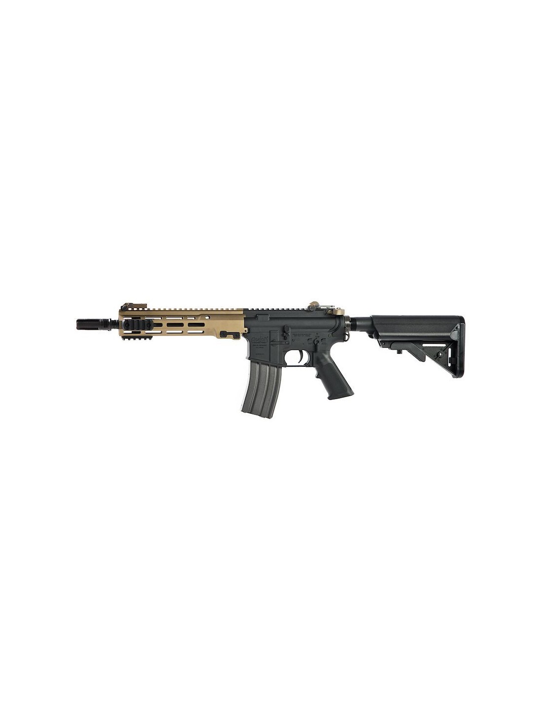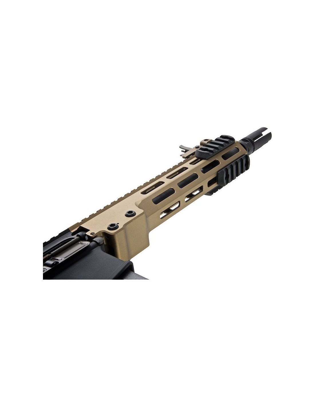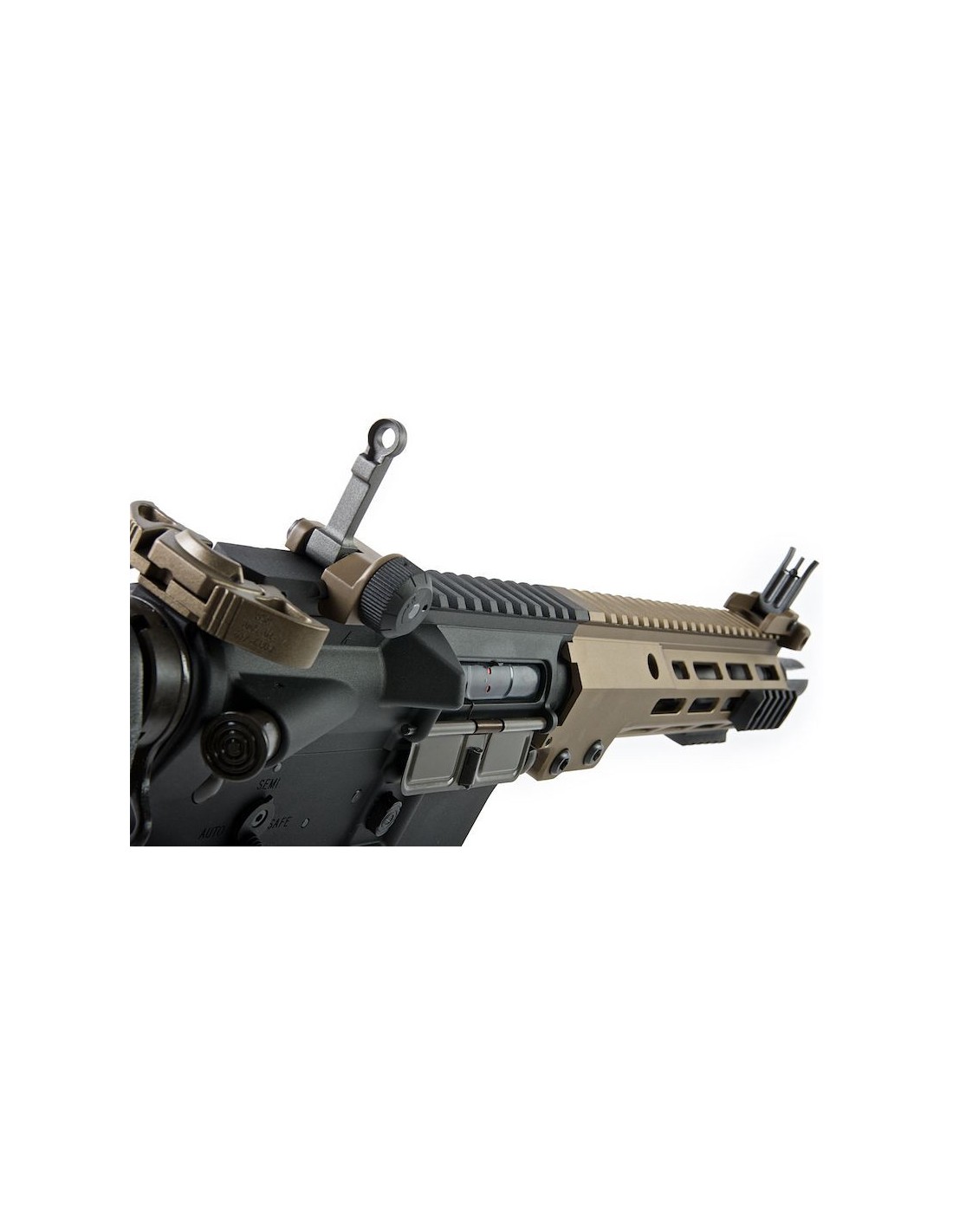 The AEG version here is a faithful replica of the real steel firearm and while it may not have an operational bolt carrier group as seen on the GBBR version, it does pay close attention to other details. You will find the corresponding rail and charging handle as seen on the real steel version as well as flip-up front and rear sights. You also get the accurate four pronged flash hider and an adjustable SOPMOD style stock. As in its name, this is an Avalon AEG which means it's built upon VFC's tried and tested AEG system. As an added bonus to its already stellar reputation, this gun comes pre-upgraded with Maple Leaf parts!
