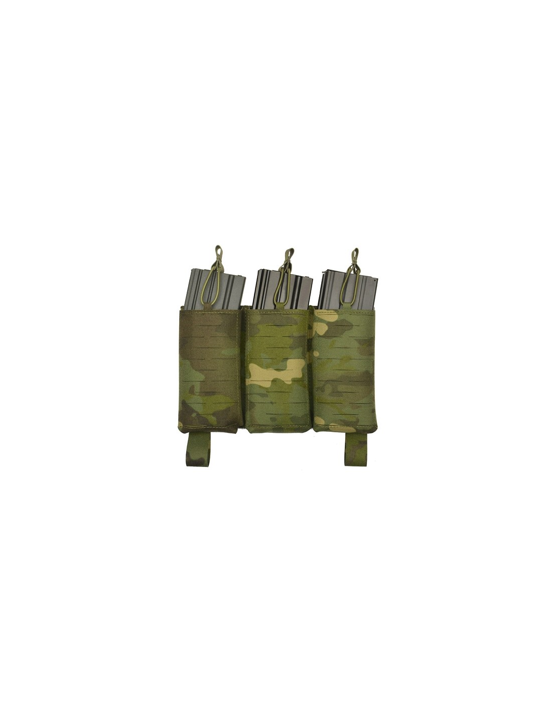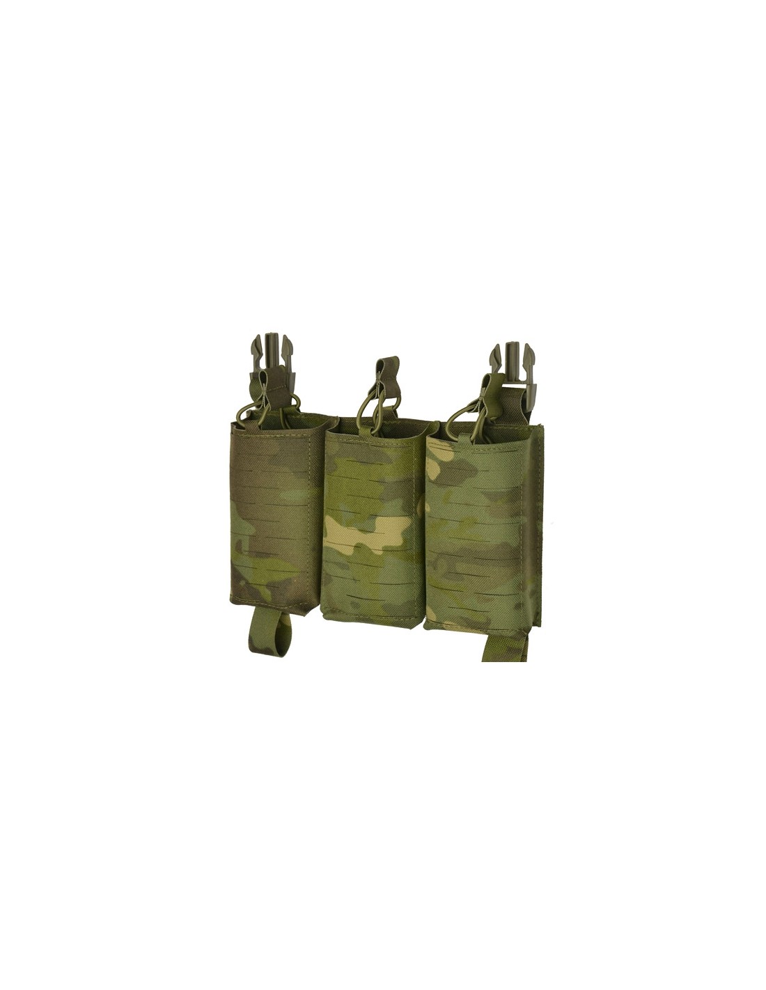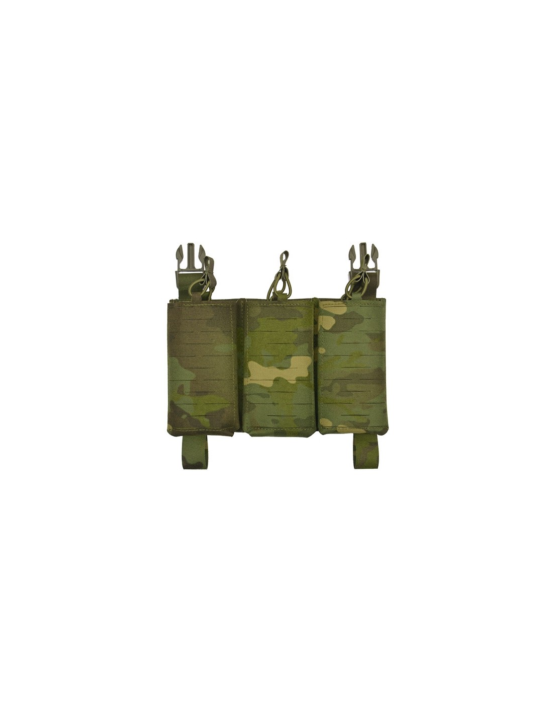 Thanks to the Buckle Up system, the panel can be mounted in seconds on a compatible plate carrier or chest rig. It has 3 magazine slots, compatible with AR-15 and AK magazines. The pouches are equipped with drainage holes to remove water and removable elastic cords to ensure optimal magazine retention.