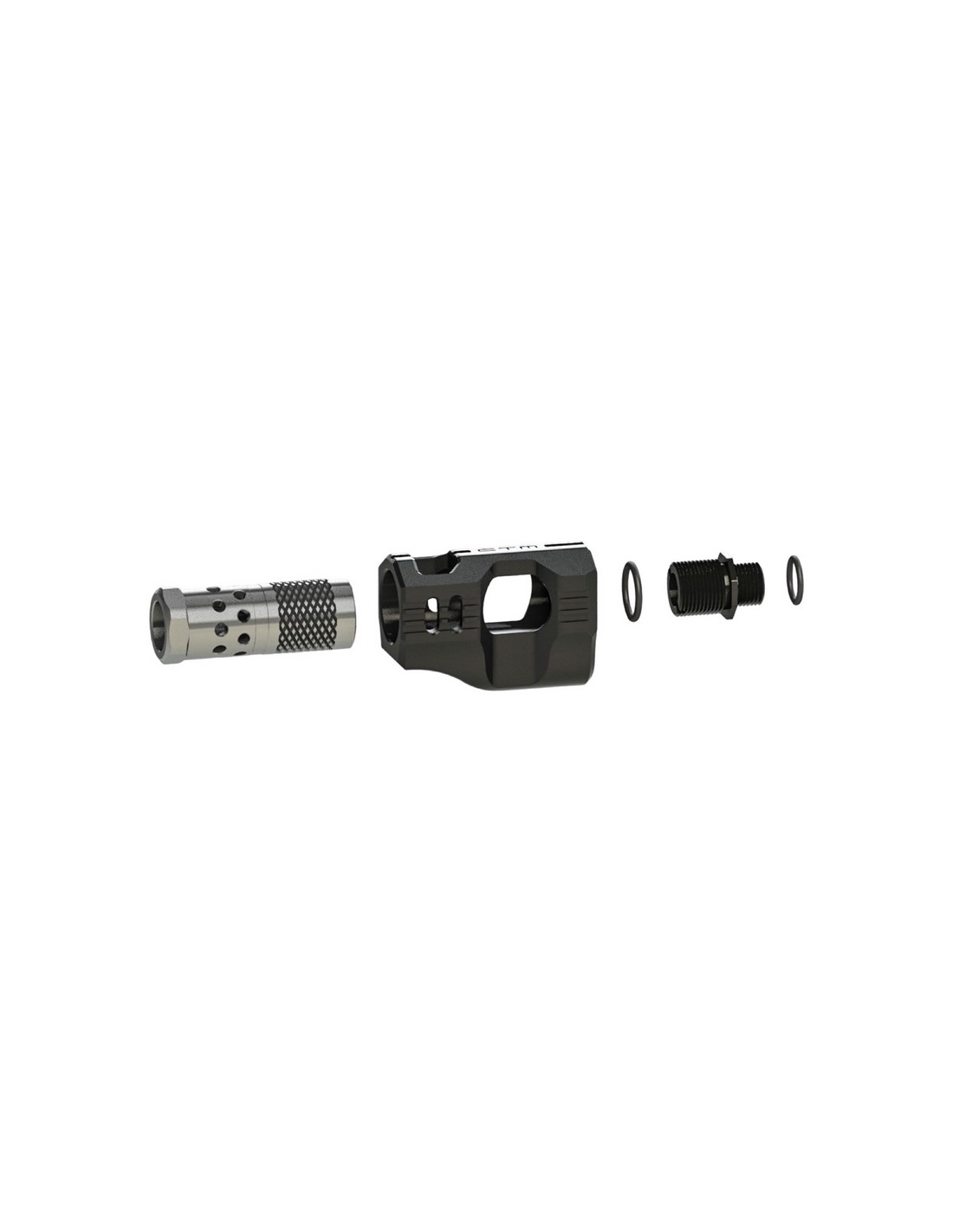 This compensator has been designed specifically for Hi-Capa platforms, with a completely original approach in terms of both aesthetics and functionality. It is installed using an adapter system and is compatible with Hi-Capas whose external barrel has internal threading. Functionally, it also allows a longer internal barrel to be concealed inside the compensator, making it easier to optimise long-range performance without altering the overall appearance of the replica.