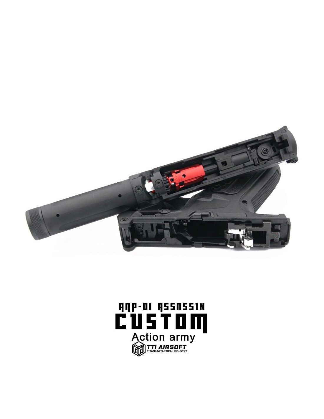 P6 Workshop presents the reinforced AAP-01 for increased performance and reliability.Featuring a superior quality barrel, seal, tensioner and chamber assembly for precise Hop adjustment. Also include CNC steel sear and hammer .