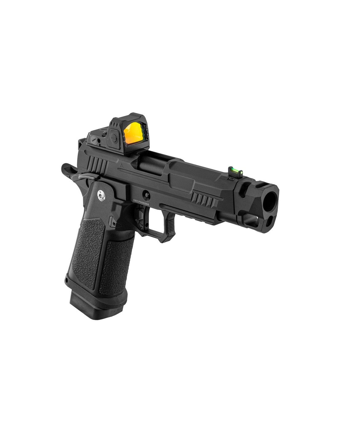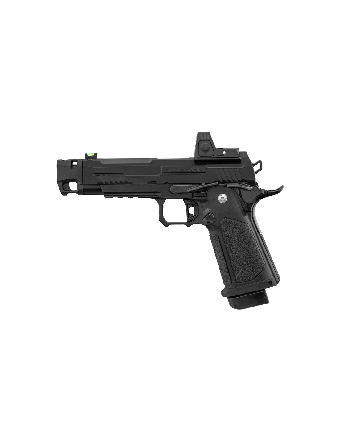 It incorporates a compensator with functional vents, which direct the gas upwards to reduce the vertical movement of the replica when firing. Its Optics Ready slide is machined to directly accommodate the ARS1 micro red dot sight, allowing for a reduced sight height that improves target acquisition speed.