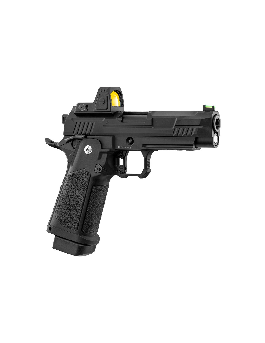 The replica incorporates ten MIM (Metal Injection Molding) steel internal parts, which guarantee long-term strength and reliability. This construction reinforces the elements subjected to the mechanical stresses of the blowback system. Its high compatibility with Hi-Capa parts makes it easy to upgrade thanks to the wide availability and variety of parts.