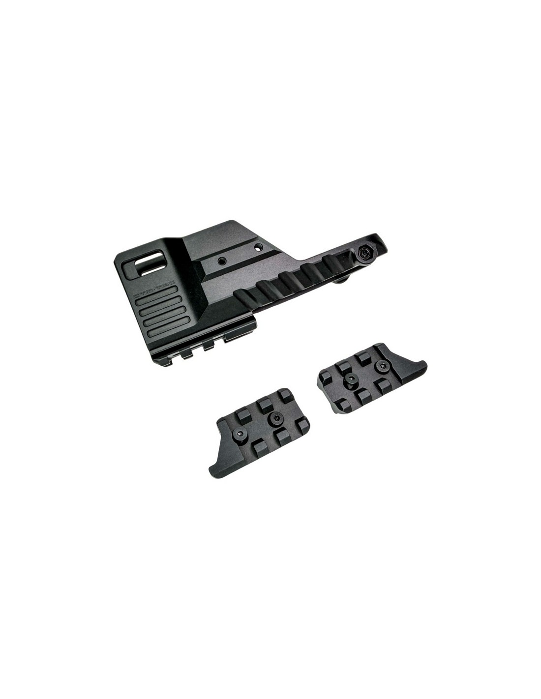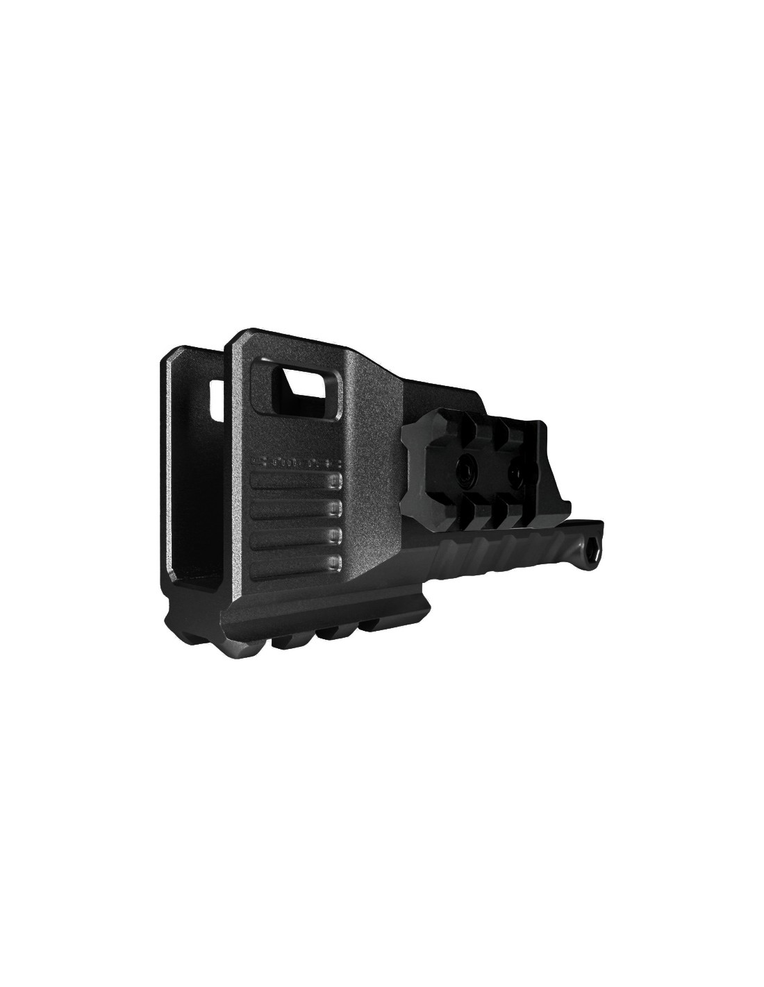 - Picatinny rail on three sides (left, right and bottom)