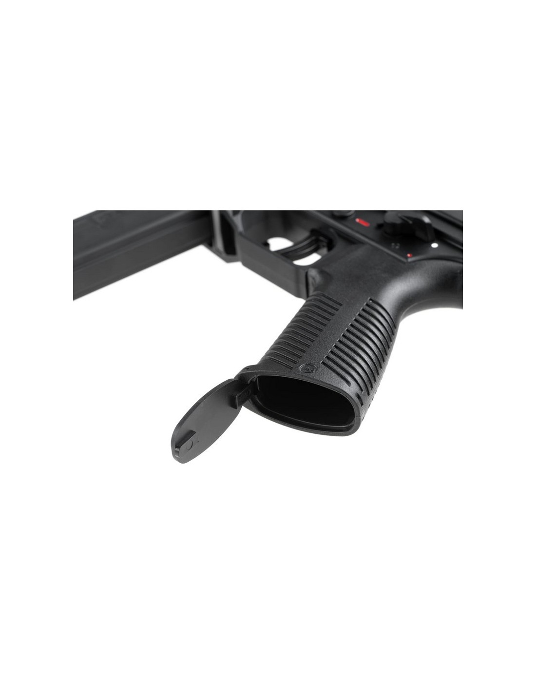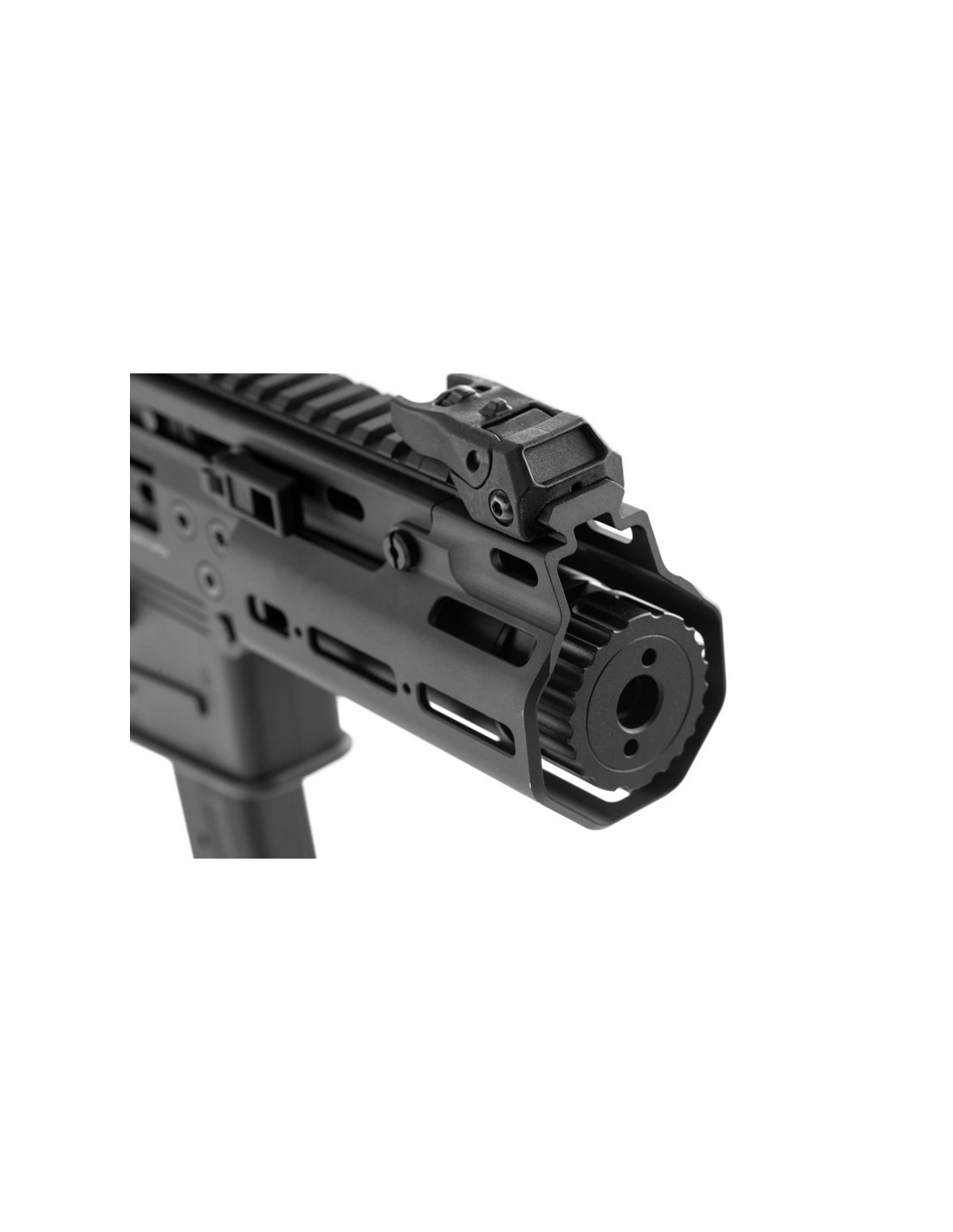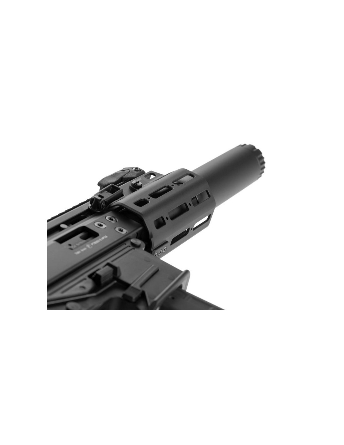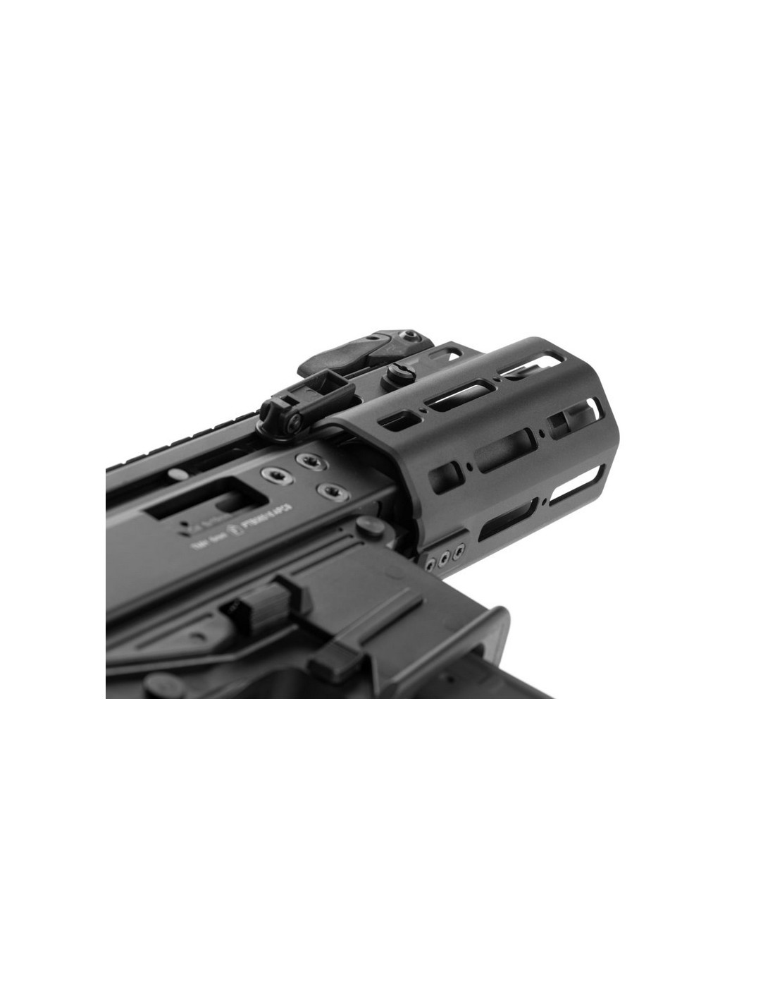 A single long Picatinny rail on top with additional M-LOK slots on the handguard offers ample surface for attaching additional equipment, like red dots, laser sights, and flashlights. As an officially licensed replica, all factory markings are engraved on both the upper and lower receiver and on the magwell.