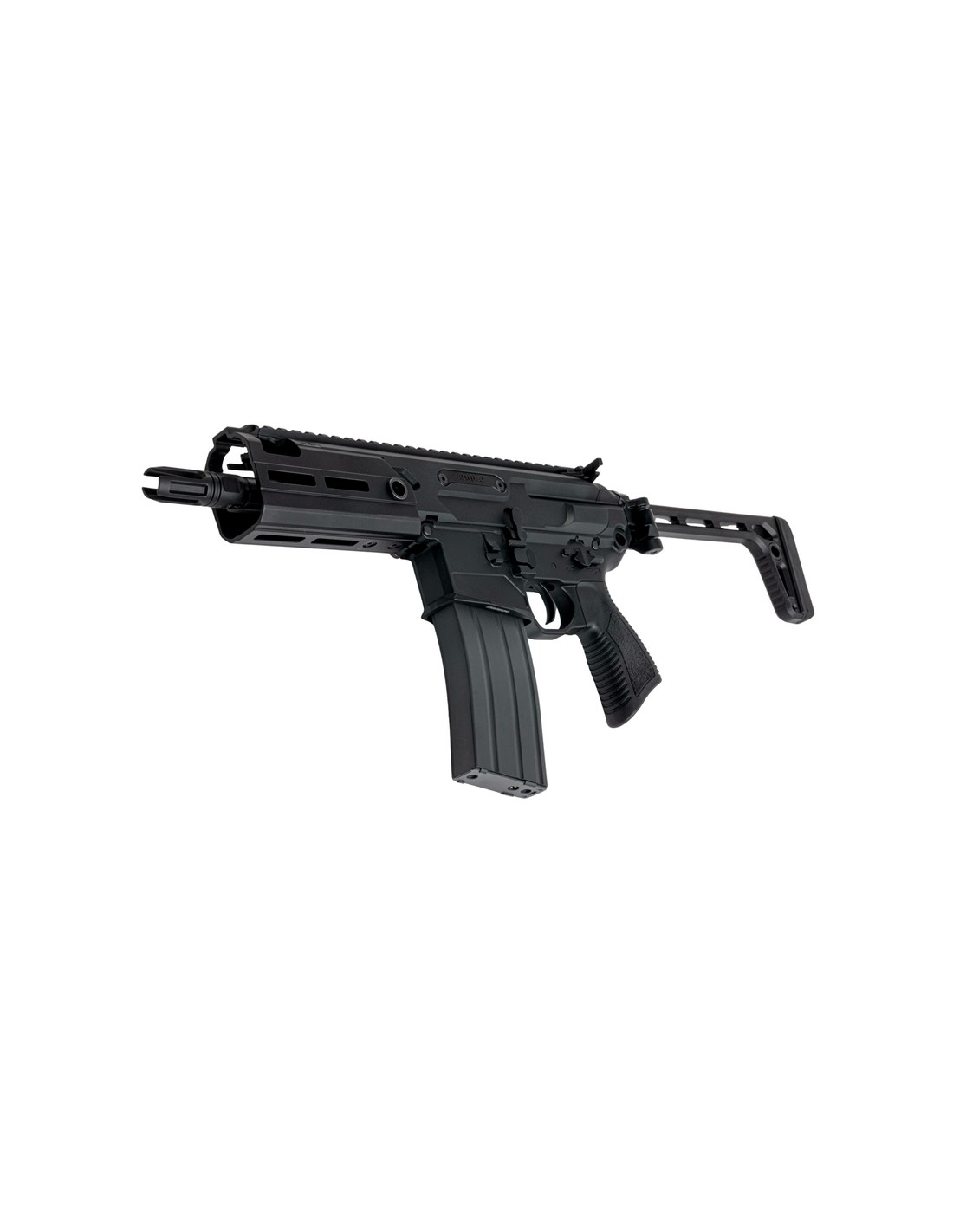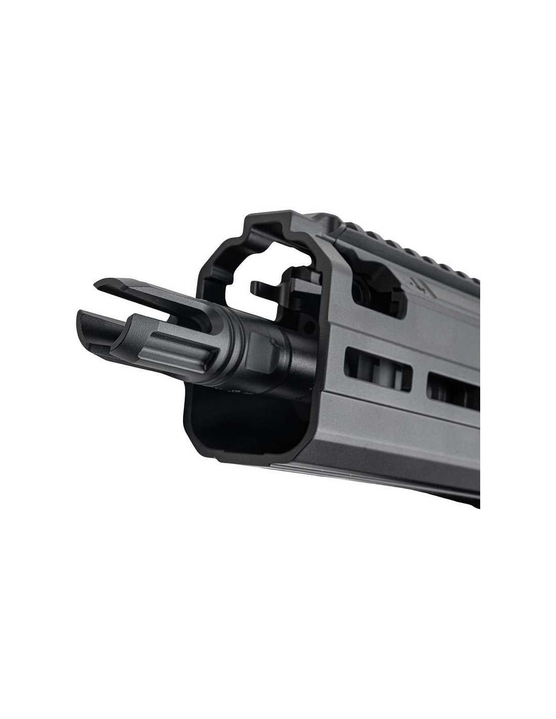 The replica retains the modularity of the real model, with a short-stroke piston system, a 5.5-inch M-LOK handguard, a monolithic Picatinny upper, a nearly fully ambidextrous control system, and extensive compatibility with MWS parts and magazines. Its construction combines a lightweight aluminium body with steel-reinforced internals. The Gen 2 version corrects the flaws of the first generation with improved recoil damping, a revised barrel attachment, a more stable hop-up chamber, and several maintenance recommendations. The result is a compact, robust, customisable, and high-performance replica, suitable for both CQB and milsim.