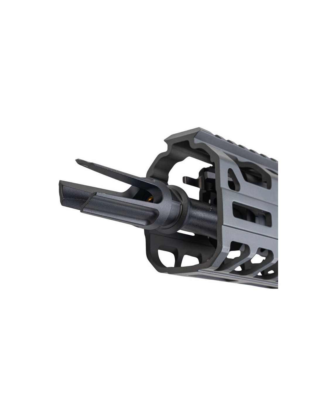 • Equipped with a minimalist stainless steel folding stock and a 3-prong conical QD flash hider.