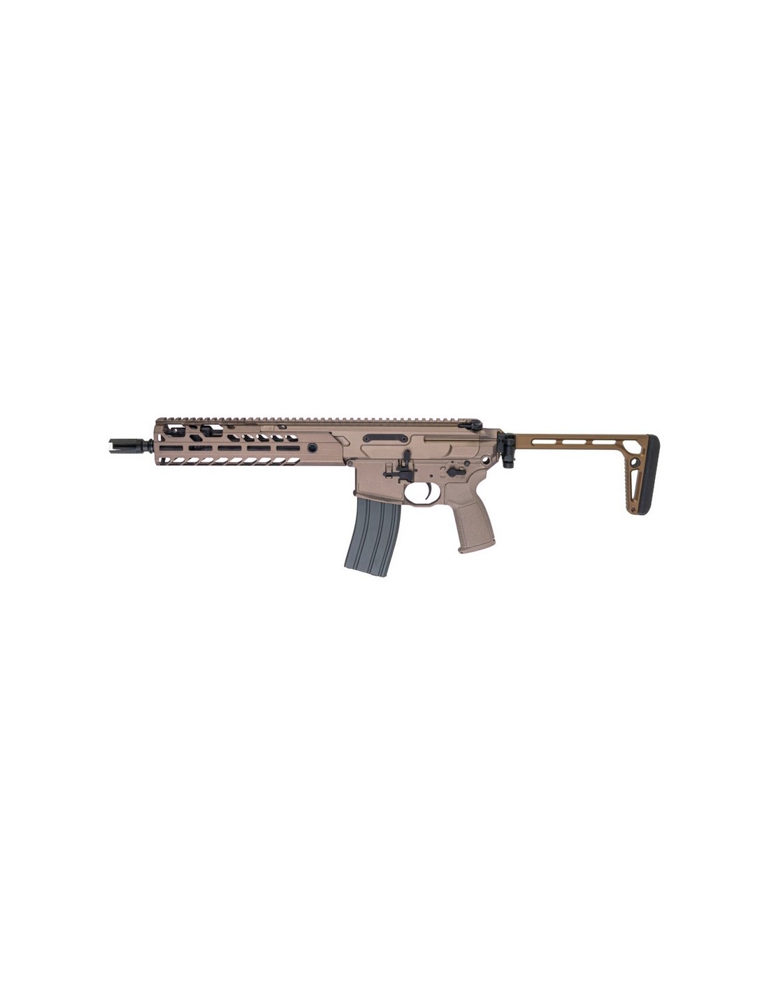 - Equipped with a minimalist stainless steel folding stock and a 3-prong conical QD flash hider.