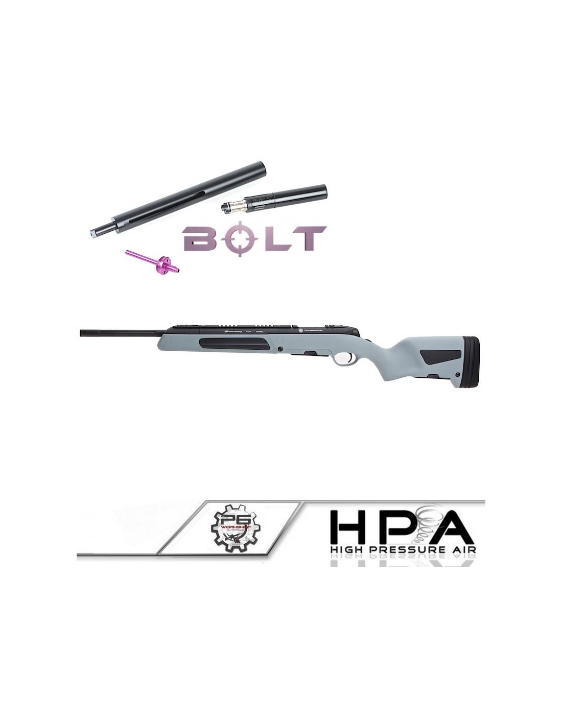 The P6 workshop present this magnificent HPA Steyr Scout equipped with a Wolverine Bolt system. With the installation of the HPA system, this sniper enters to another dimension ! Many modifications have been made to achieve this conversion because basically the ASG Steyr Scout is not compatible with the Wolverine Electrical Bolt system.