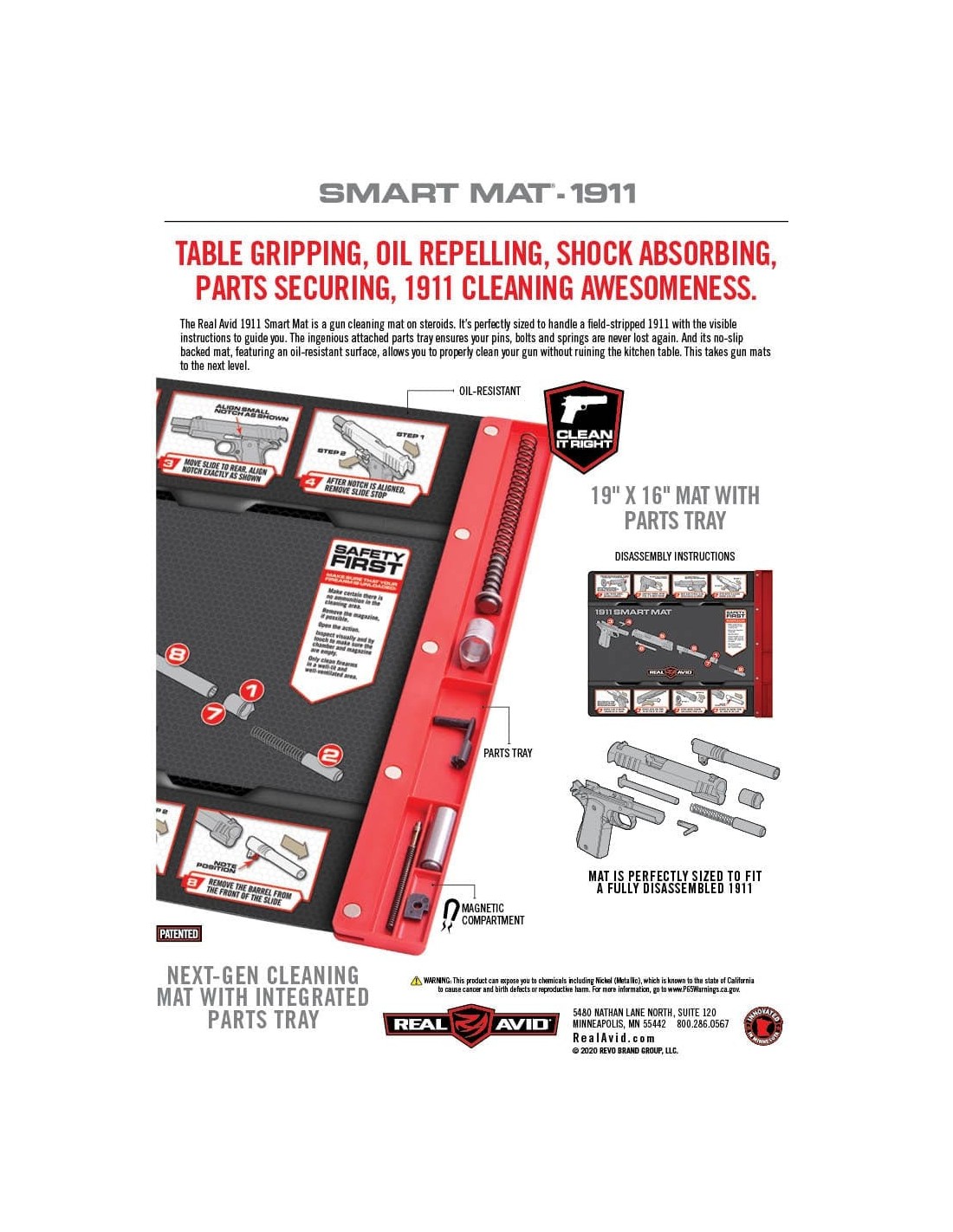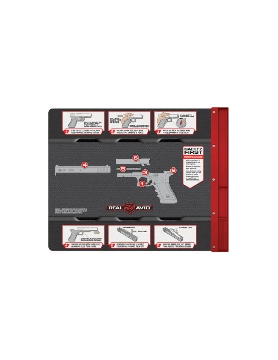 REAL AVID Smart Mat cleaning mat for Glock with disassembly instructions and its magnetic tray for storing disassembled parts.