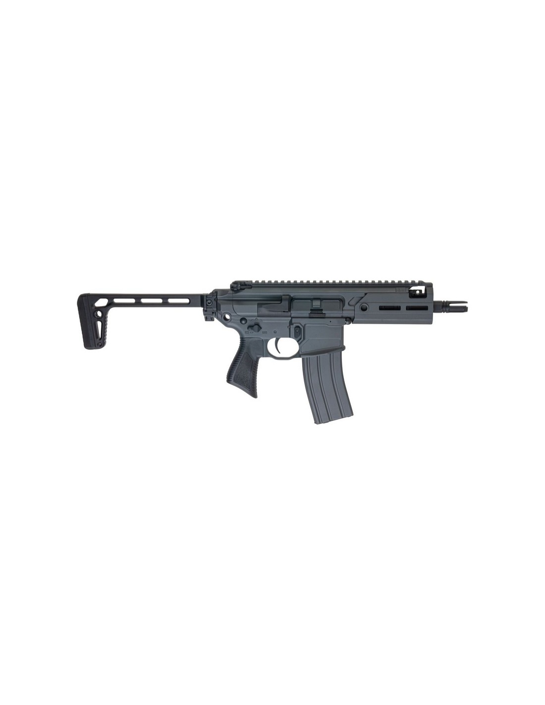 - Équipé d'une crosse pliable minimaliste en acier inoxydable, d'une poignée pistolet PDW unique et d'un cache-flamme QD conique à 3 branches