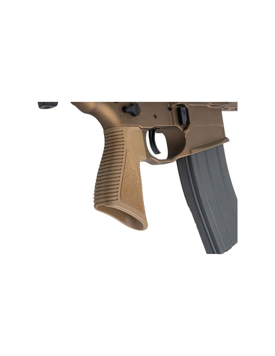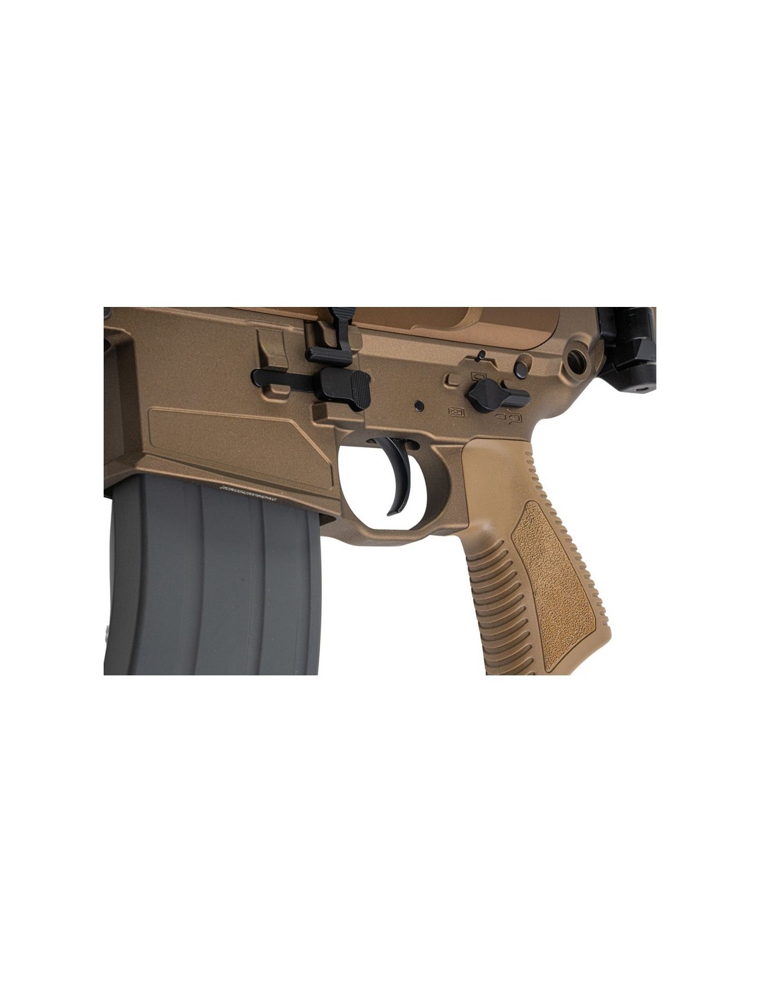 • Système de contrôle de tir partiel Ambi - Sélecteur de tir, poignée d'armement et libération du chargeur accessibles pour la main principale et la main secondaire