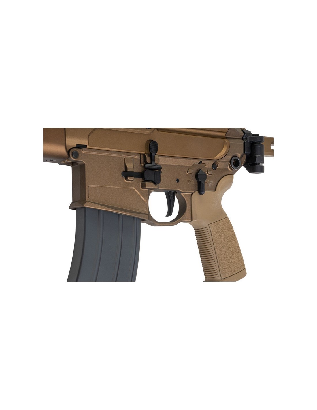 • Système de contrôle de tir entièrement ambidextre - Sélecteur de tir, libération du boulon, poignée de chargement et libération du chargeur accessibles pour la main principale et la main secondaire