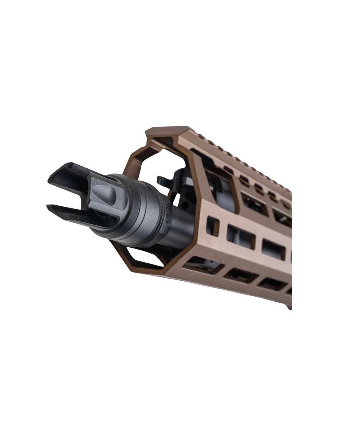 • Équipé d'une crosse pliable minimaliste en acier inoxydable et d'un cache-flamme Taper-Lok QD à 3 branches