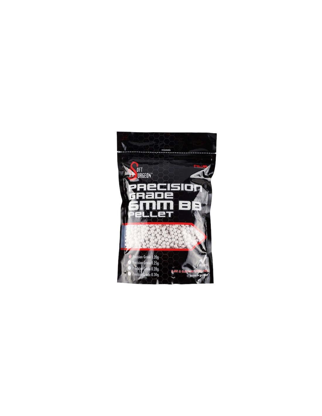 La bille Airsoft Surgeon est fabriquée à partir des meilleurs matériaux ABS pour une finition lisse et brillante, une répartition du poids plus équilibrée et une excellente résistance aux chocs du nozzle. La finition lisse et brillante donne moins de friction sur les canons de précision pour une vitesse plus élevée.