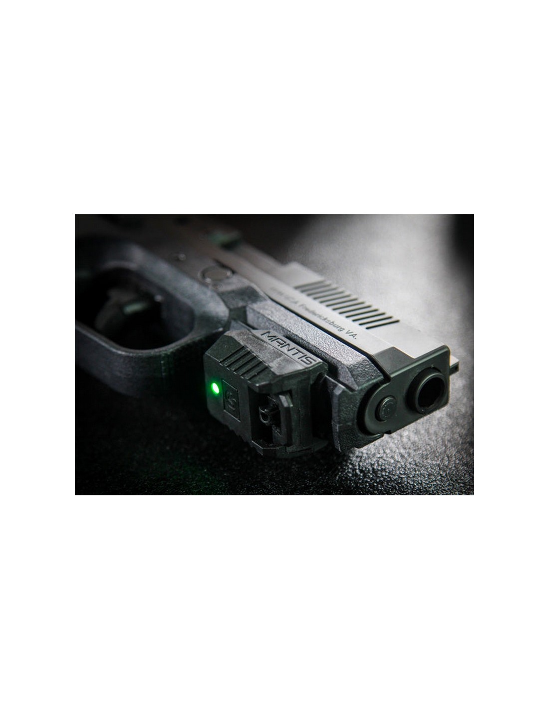 - Connectez Mantis X10 au rail d'accessoire. Il fonctionne aussi bien en tire avec munition réelle qu’en tir à sec, sur une arme CO² ou même sur un airsoft