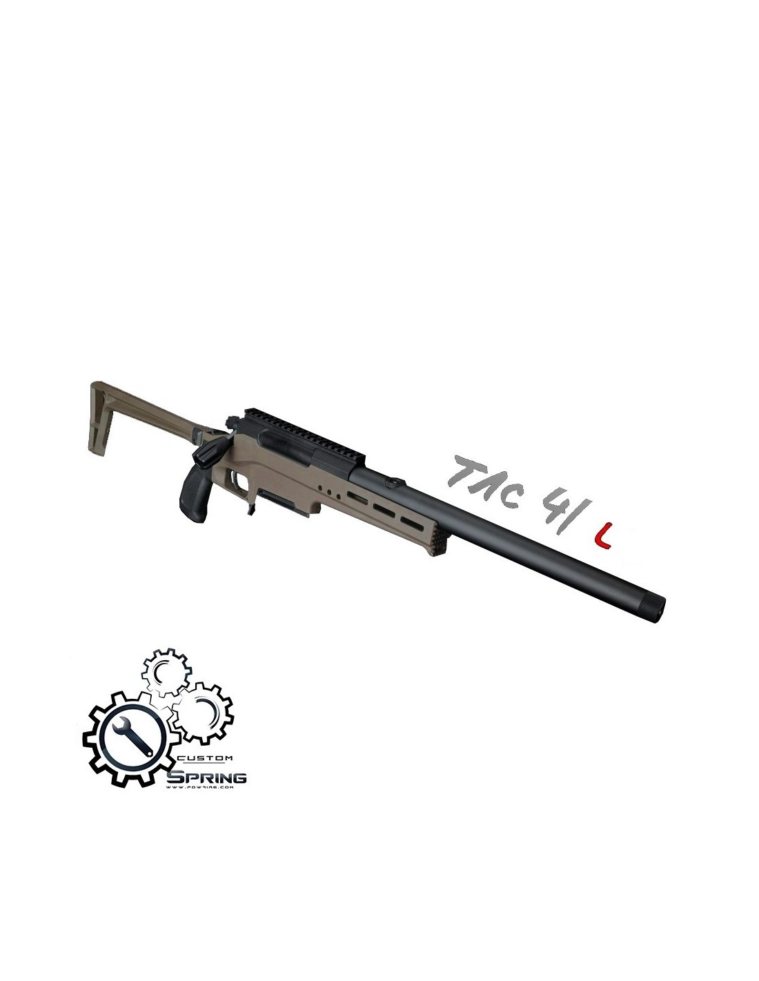 Custom upgradé sur base TAC-41 Lite avec chassis aluminium. Nous avons choisi cette réplique car elle constitue une bonne base d'upgrade, elle permet d'y mettre le meilleur en interne sans sacrifier la compatibilité et le prix. La version avec chassis aluminium du Tac-41 dispose en plus du bloc hop-up aluminium Silverback de série.