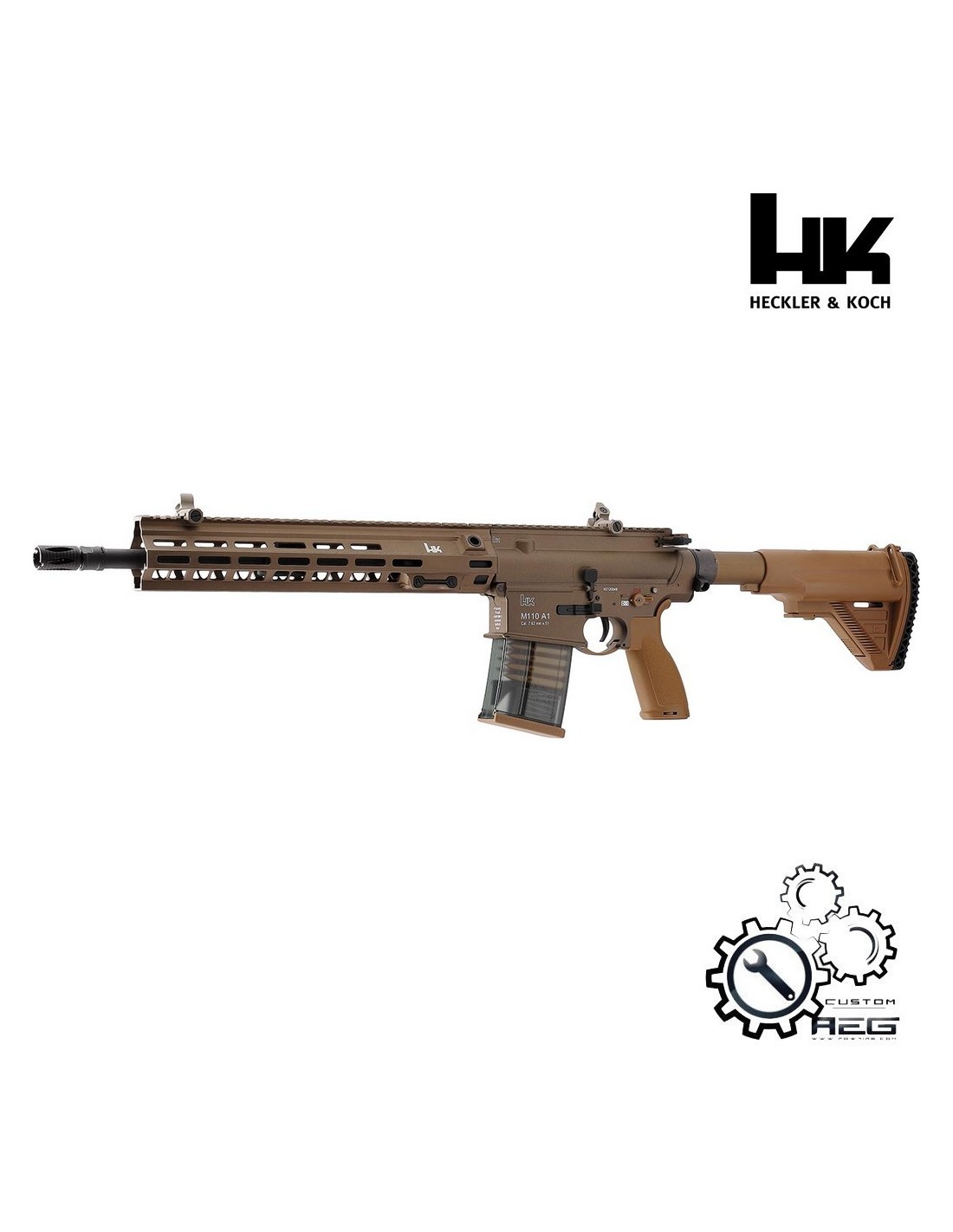 Le Heckler & Koch M110 A1 sous licence officielle Heckler & Koch est le fusil de précision AEG idéal pour les joueurs et les collectionneurs d'airsoft. Inspiré du fusil des services militaires américains, il est doté d'une construction entièrement métal de haute qualité. Pour cela, le HK M110 A1 s'appuie sur des matériaux sélectionnés, une fabrication de première choix et une technologie fiable. Le rail Picatinny est équipé d'un viseur en fer amovible décalé à 45°. Il lui donne une capacité supplémentaire de proximité, même avec la lunette montée.