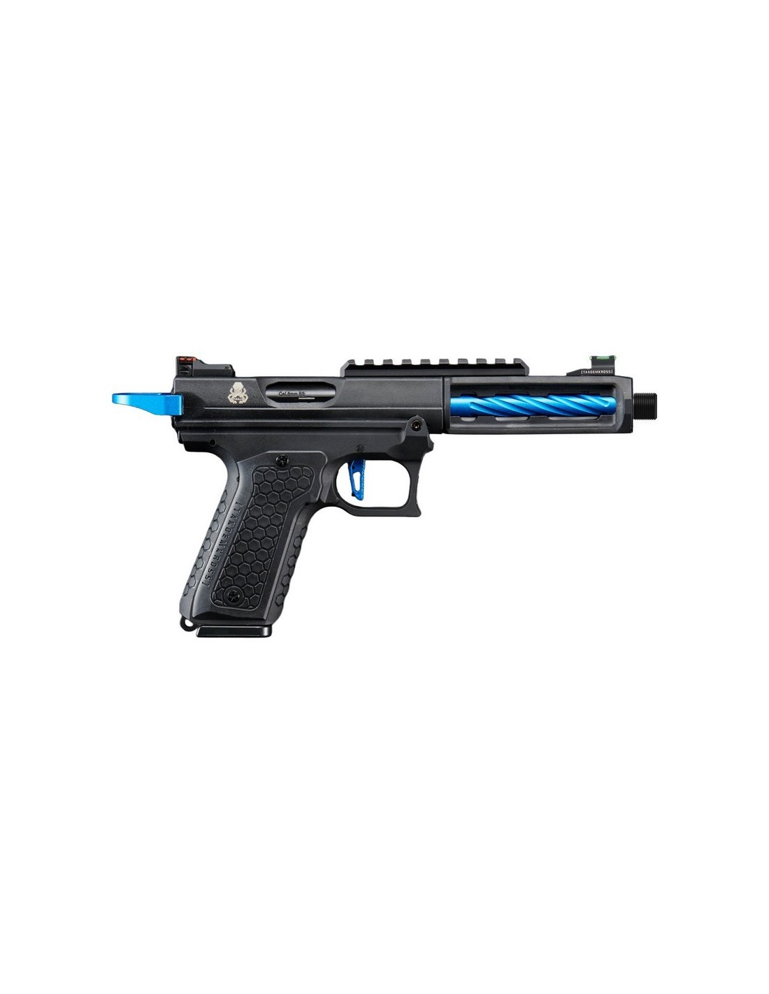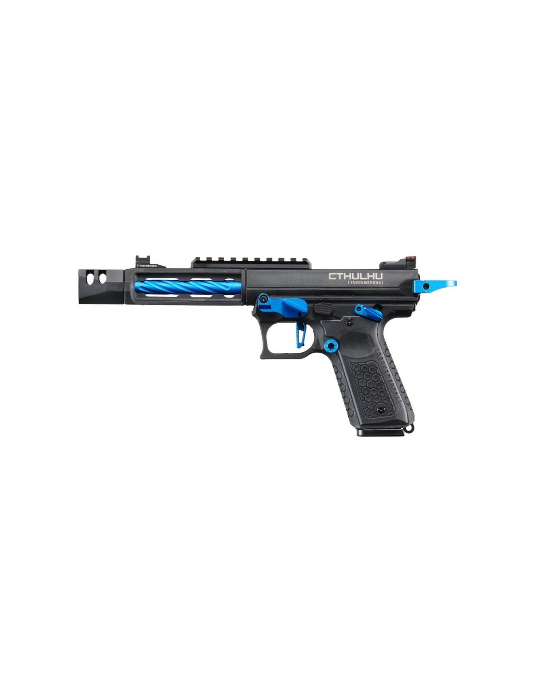 Découvrez le nouveau pistolet à gaz Tandemkross CTHULHU. Fabriqué en polymère renforcé, ce GBB semi/full auto bénéficie d'un design entièrement sous licence. Cette réplique est doté d'un compensateur carré innovant "Game Changer Pro", d'un repose-pouce CNC, et d'une détente "squelette". De plus le Tandemkross Hivegrip assure une prise en main solide. Avec un anneau de chargement "Halo" et des viseurs à fibre optique "Eagle Eye", ce pistolet offre une précision inégalée. Le chargeur de 24 coups et le hop-up réglable renforce sa polyvalence.