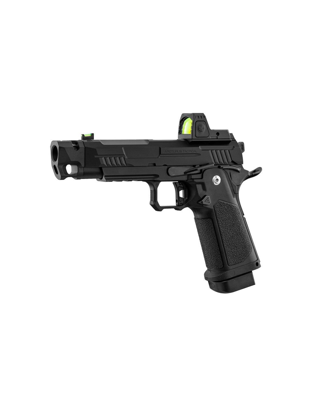 Le Arcturus Vanguard Combo GBB se reprend sur la plateforme du Hi-Capa 4.3, en y ajoutant des éléments destinés à améliorer sa stabilité et sa rapidité de tir. Cette version est livrée avec un compensateur ainsi qu'un micro red dot ARS1.