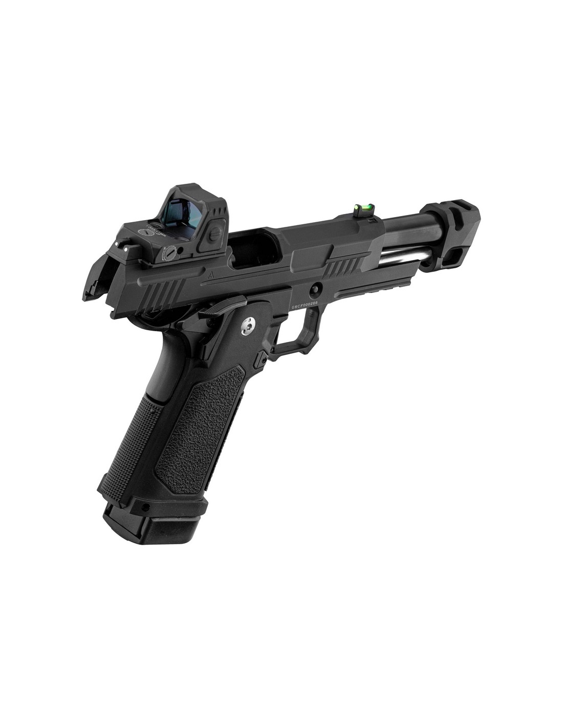 Elle intègre un compensateur doté d'évents fonctionnels, ces ouvertures dirigent le gaz vers le haut afin de réduire le mouvement verticale de la réplique lors du tir. Sa culasse Optics Ready est usinée pour accueillir directement le micro red-dot ARS1, ce qui permets une hauteur de visée réduite qui améliore la rapidité d'acquisition de la cible.