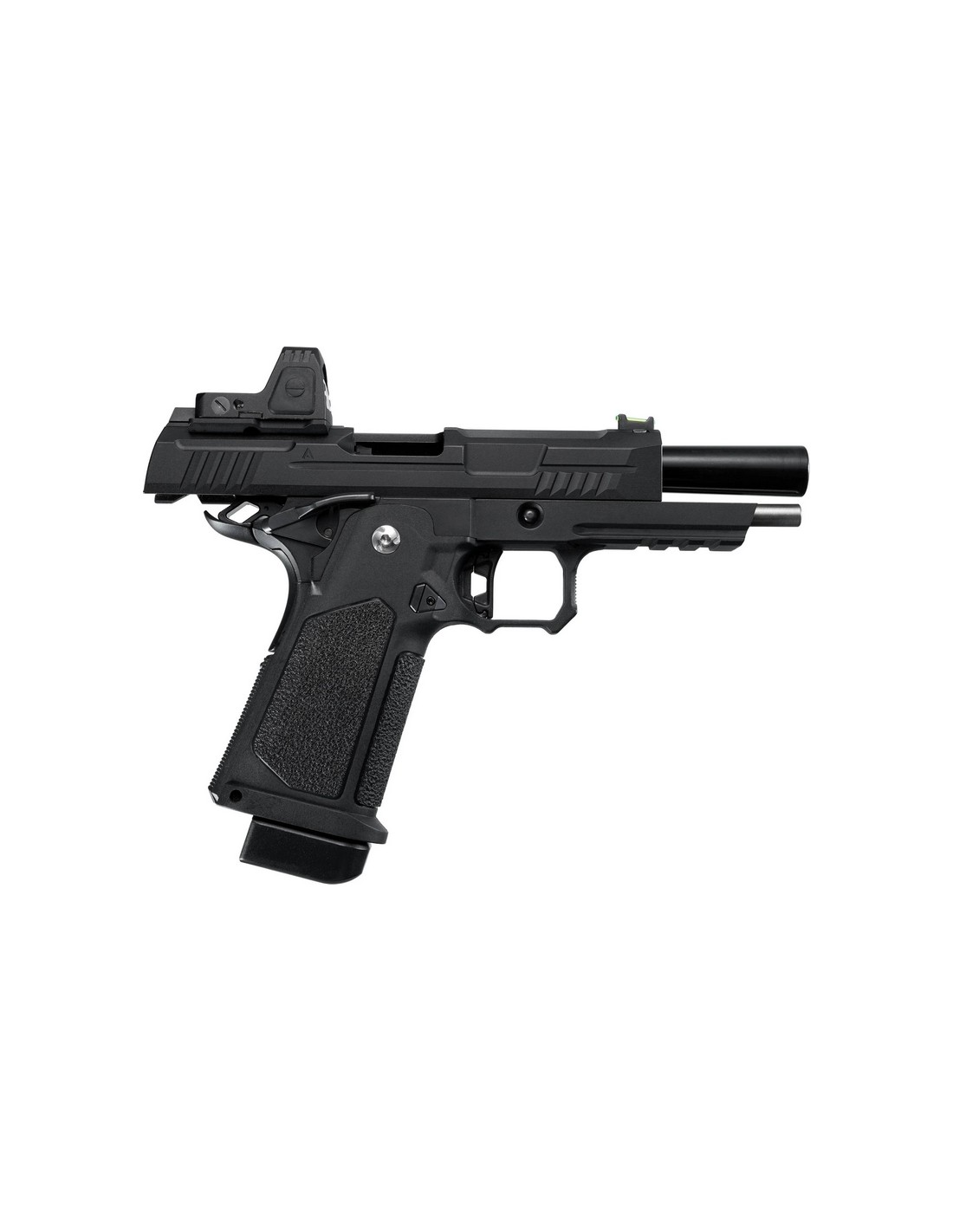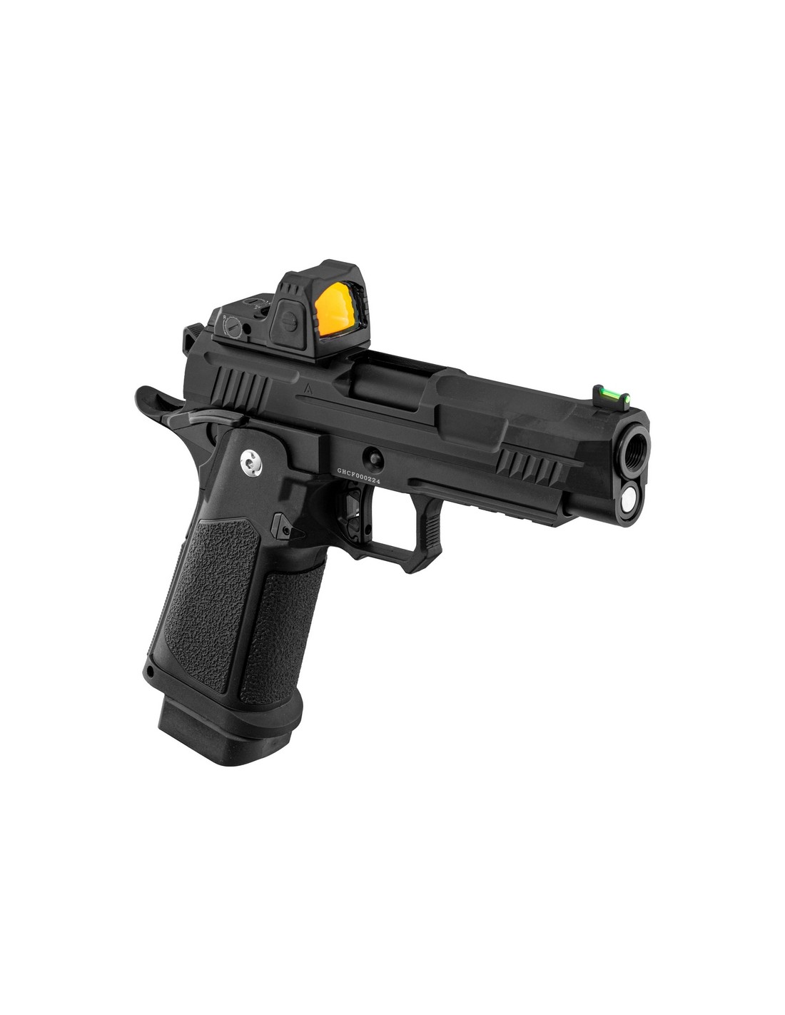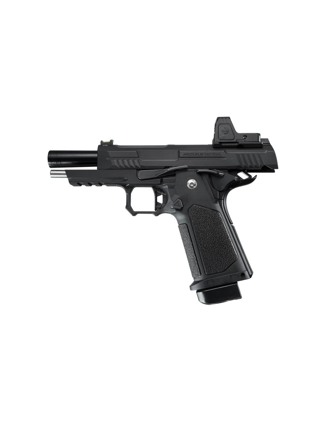 Le Arcturus Vanguard GBB se repose sur une des plateformes les plus connues et fiables du monde de l'airsoft, le Hi-Capa 4.3. Cette version est livrée avec un micro red dot ARS1 installé sur la culasse Optics Ready, qui grâce a ce système permet d'obtenir un axe de visée plus bas pour une acquisition rapide de la cible.