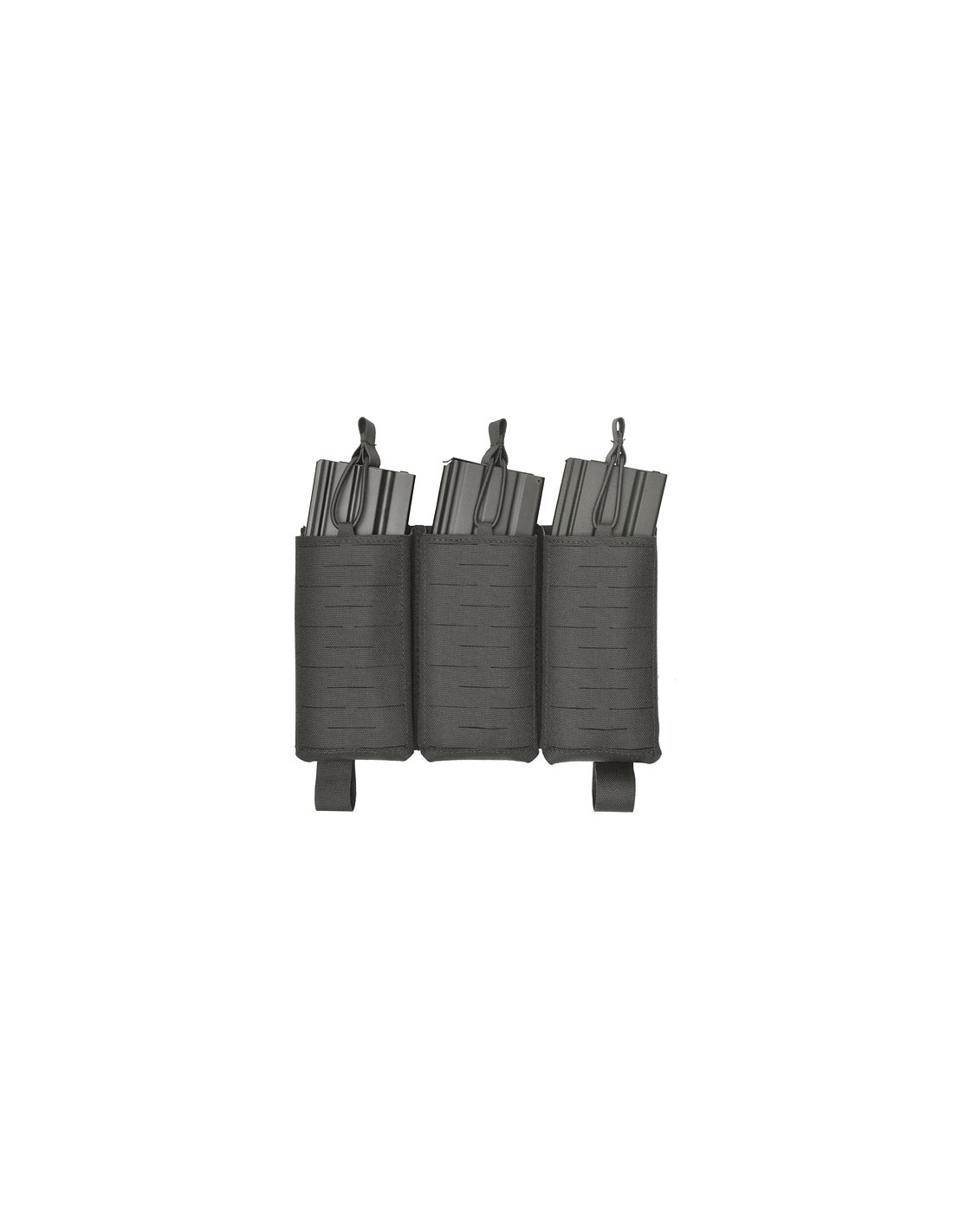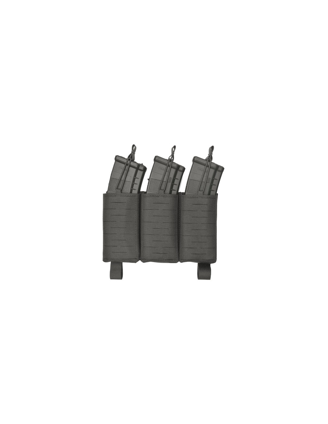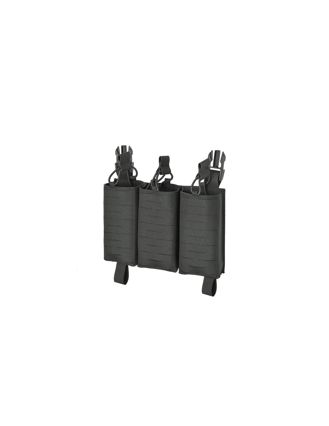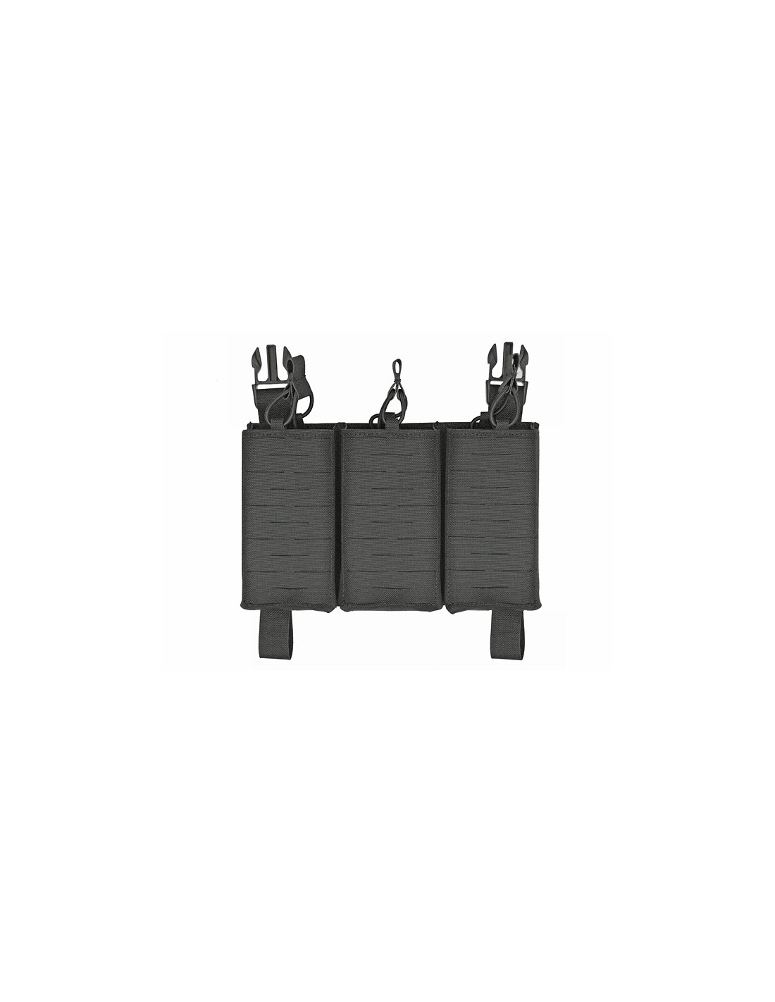 Grâce au système Buckle Up, le panneau se monte en quelques secondes sur un porte-plaques ou un chest rig compatible. Il dispose de 3 emplacements pour chargeurs, compatibles AR-15 et AK. Les pochettes sont équipées de trous de drainage pour évacuer l’eau et de cordons élastiques amovibles assurant un maintien optimal des chargeurs.