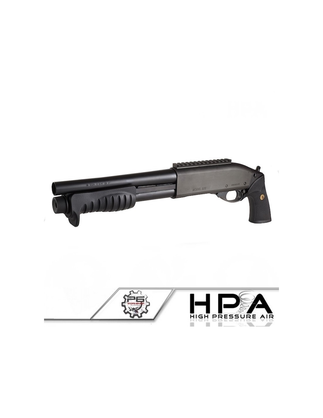 Le Tokyo Marui M870 Breacher est la version raccourcie de la gamme Marui M870. Ce pompe fonctionnant au green gaz, nous avons modifié le réservoir avec une valve HPA pour le faire fonctionner en air comprimé.