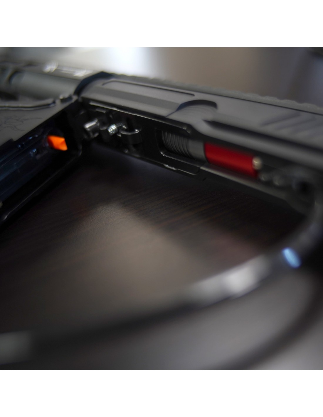 - Détection de chargeur vide et verrouillage fonctionnel du verrou (lorsqu'il est utilisé avec les chargeurs Wolverine Airsoft)