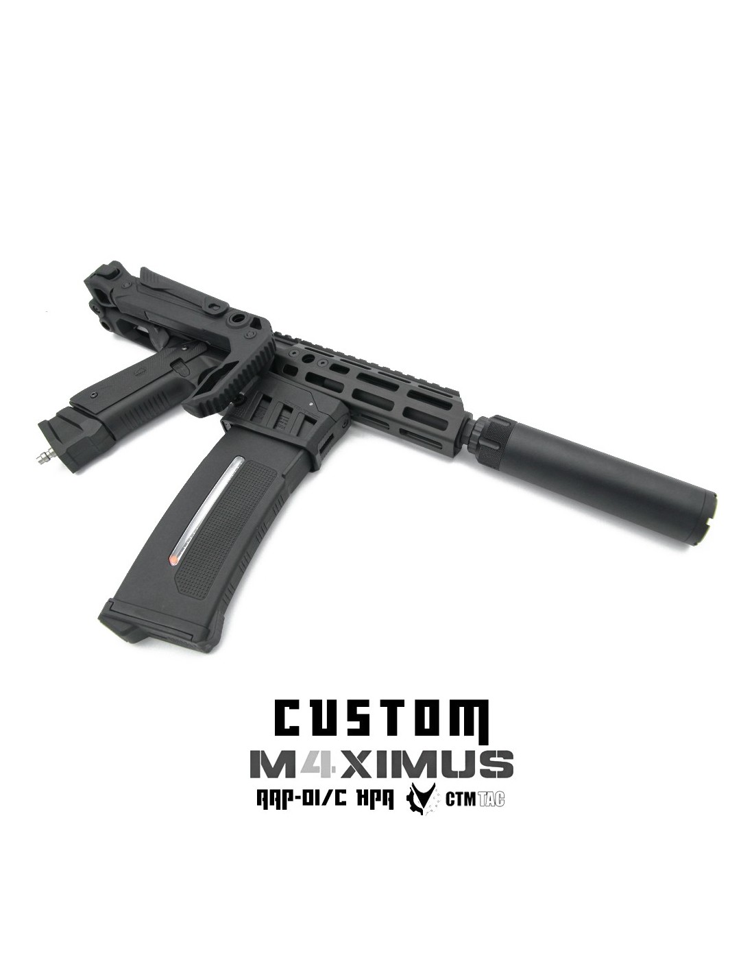 Réplique AAP01 assemblée dans notre atelier avec le kit CTM M4ximus, la réplique intègre un bloc détente renforcé complet a savoir la cage, les pièces internes, les ressorts et les goupilles. Grace a cette mise a jour la fiabilité se voit drastiquement améliorée et vous pourrez vous en donner a coeur joie pour alimenter votre AAP avec des chargeurs M4. Cette version Light PDW ultralégère est dotée d'une crosse pliable qui permet plus stabilité dans les tirs et une manoeuvrabilité exceptionnelle, tandis que l'apport du silencieux permet de rester plus discret en toutes circonstances. Remarque importante : l'effort de feed demandé par le canal horizontal d'alimentation fera que vous ne pourrez pas utiliser la totalité d'un chargeur au complet, aussi nous vous recommandons vivement d'opter pour l'EPM RX de 250 billes pour un plus grand confort d'utilisation.