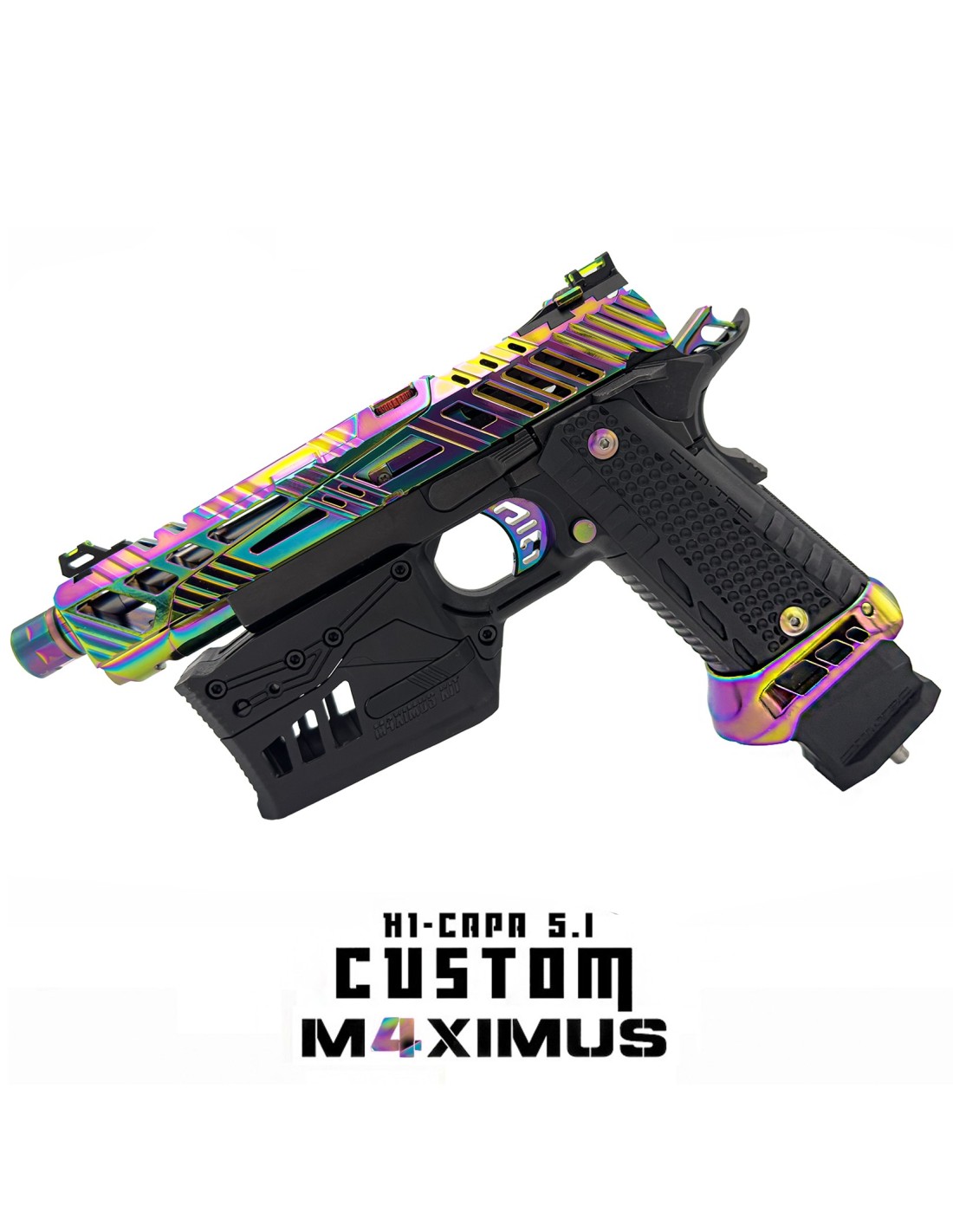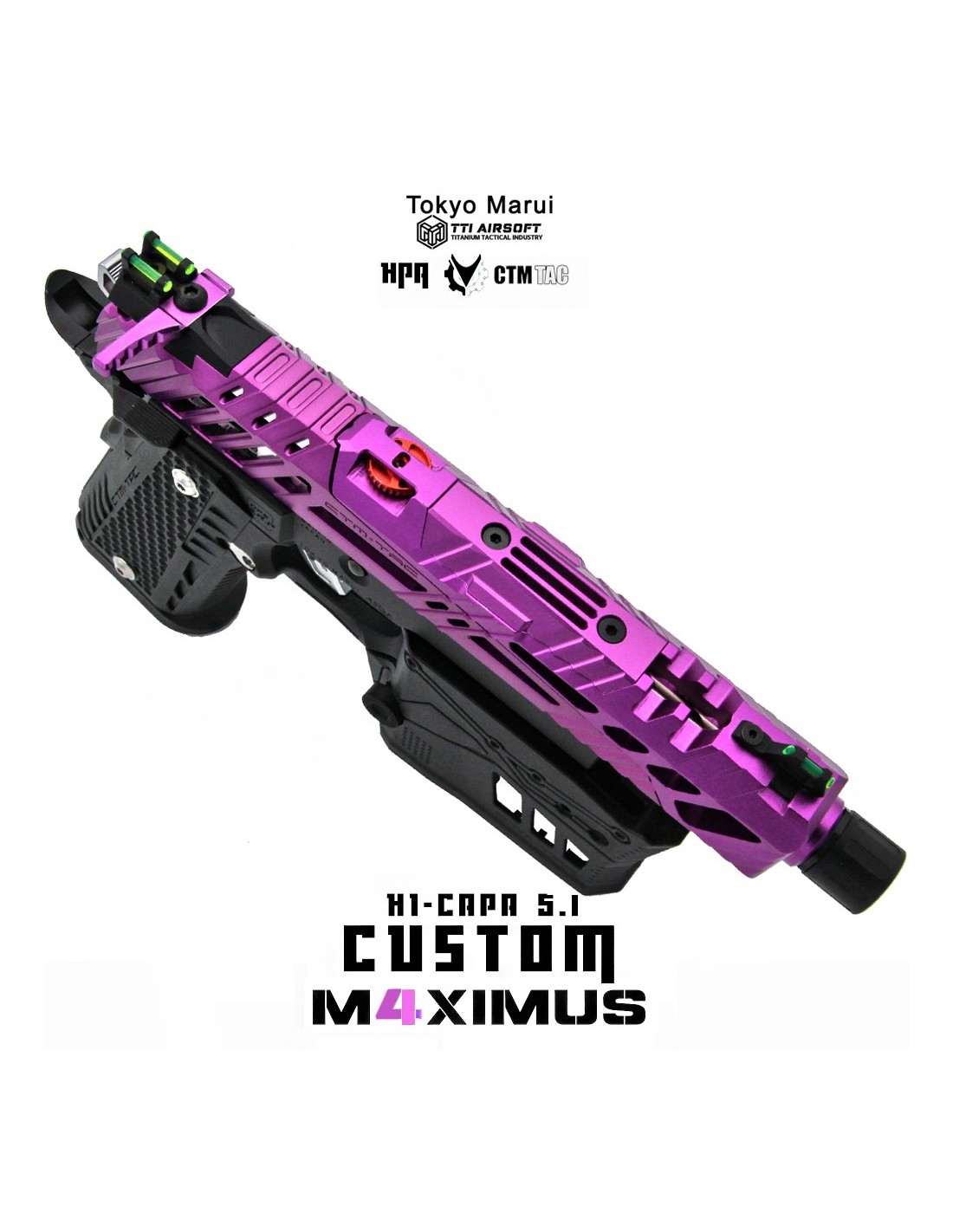 6Labs vous présente le Tokyo Marui Hi-Capa assemblée dans notre atelier avec le kit CTM M4ximus ! Il dispose d'un ensemble canon, joint et bloc Hop-up de qualité supérieure avec un réglage précis ainsi qu'un ensemble de sears Acier CNC. Grace a cette mise a jour la fiabilité se voit drastiquement améliorée et vous pourrez vous en donner a coeur joie pour alimenter votre Hi-capa avec des chargeurs M4. Remarque importante : l'effort de feed demandé par le canal horizontal d'alimentation fera que vous ne pourrez pas utiliser la totalité d'un chargeur au complet, aussi nous vous recommandons vivement d'opter pour l'EPM RX de 250 billes pour un plus grand confort d'utilisation.